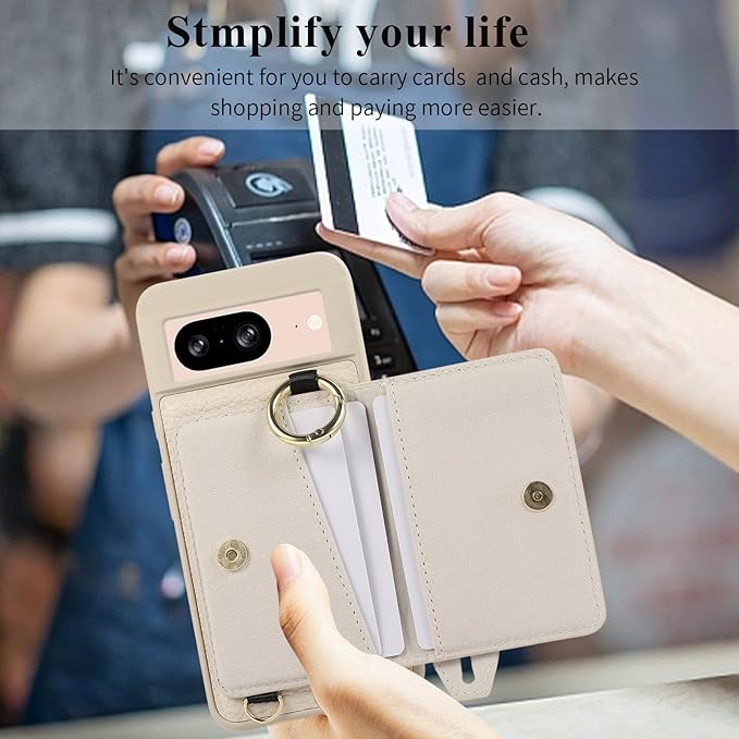 UnnFiko For Google Pixel 9 Pro ケース 財布型スマホケース 手帳型 便利性 ウォレットケース フィンガーリング カード収納 携帯ストラップ付き グーグルピクセル9 Pro バンパー スタンド機能 ストラップ付き google pixel 9 Pro カバー 本革 レザー カード入れ 携帯保護カバー (Google Pixel 9 Pro,ホワイト)