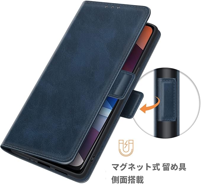 【機能性②】:マグネット内蔵のタイプです、留め具が側面装備で、使用上、指への支障も無くなって、一見からするととてもシンプルな感じがします。精密な縫製技術を重ねて出来上がった手帳型で、二重カバーのデザインにより、大切な携帯をキズ、汚れ、衝撃からしっかりと保護できます。