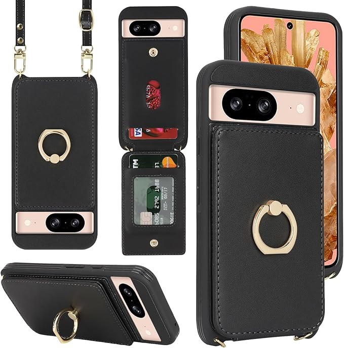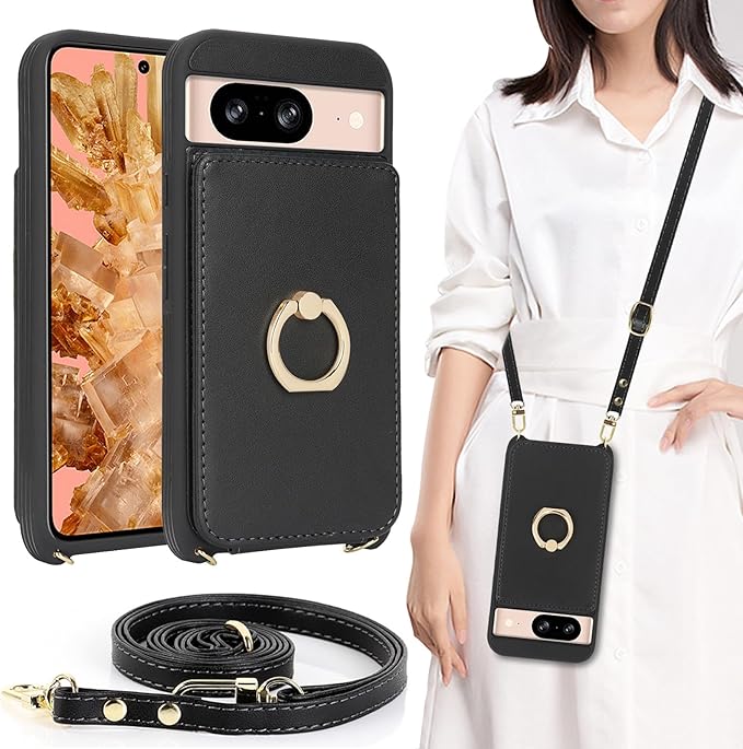 iCoverCase Google Pixel 8 ケース ショルダー リング付き ストラップケース ショルダーケース ポシェット Google用 pixel8 au SIMフリー softbank 全対応 グーグル ピクセル8 カバー pixel8 スマホケース case 適用 ブラック