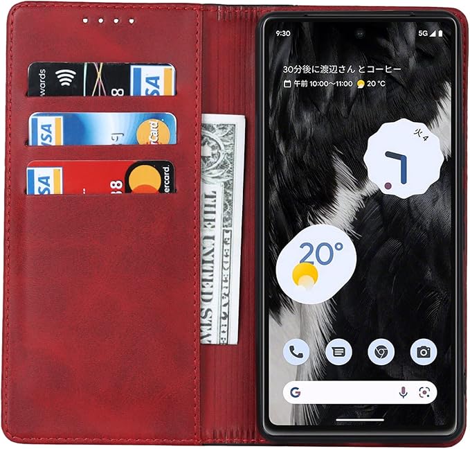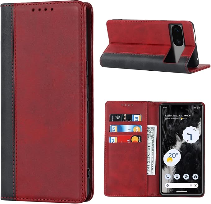 Pelanty for Pixel 7A ケース手帳型 for Google Pixel7a 6.1'' 携帯カバー 財布カード入れ 横置きスタンド機能 内蔵マグネット 合成皮革 TPU グーグルピクセル7a スマホケース 耐衝撃 2色組合せ レッド X ブラック