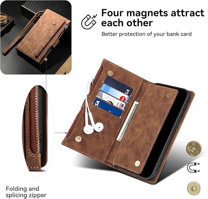 【AssassinCat】ケースPixel 9/10向け共通 ケース 手帳型 Pixel 9Pro適合 ケース 手帳型 つや消し肌感レザー グーグル ピクセル9/10/9proために携帯カバー マグネット開閉 多機能 収納 財布カバー カード入れ サイドジッパー 横置きスタンド機能 ケース 縄掛け/肩掛け 保護カバー 全面保護防塵耐衝撃横開き 滑り防止 (ブラウン)