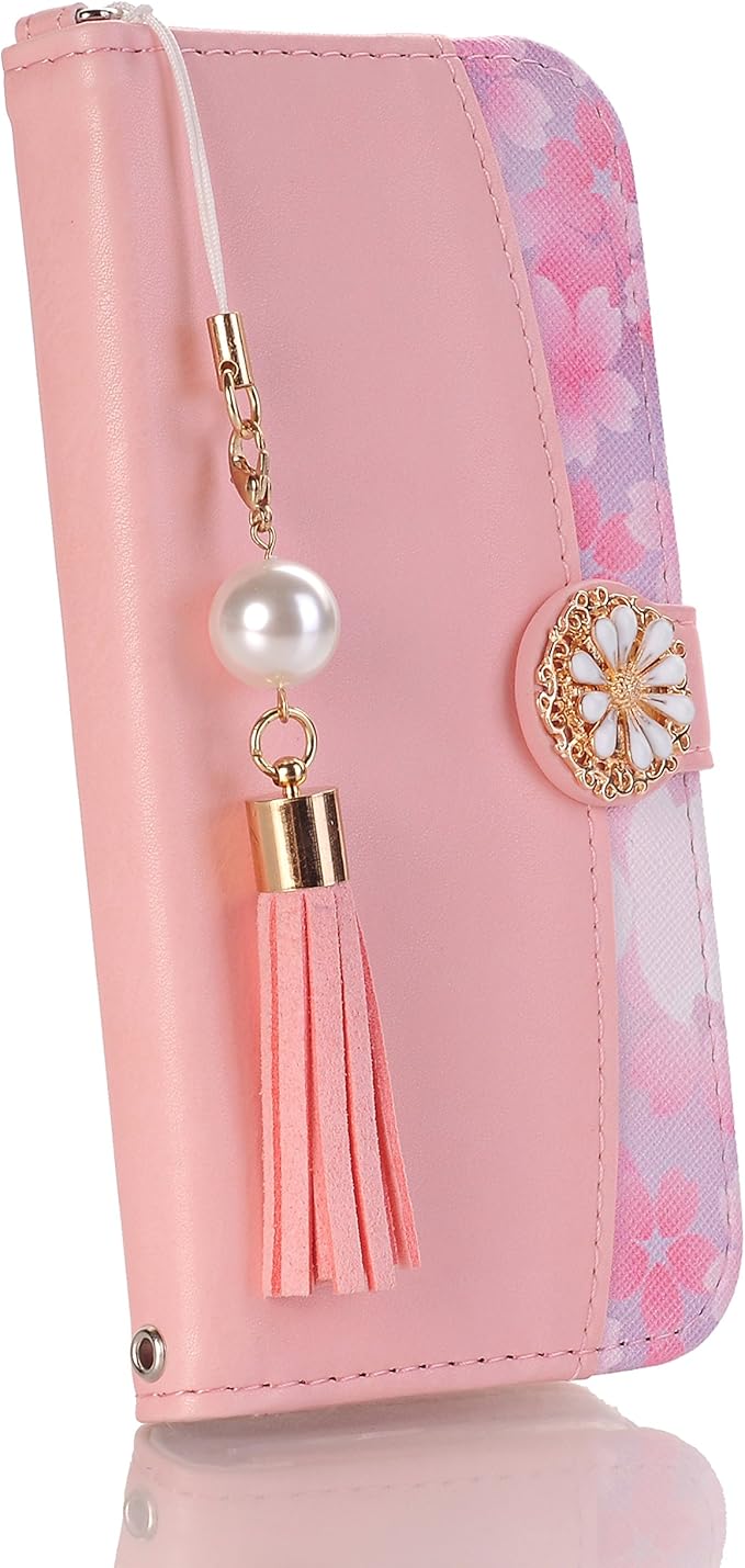 Google pixel 5a 5G◆6.34インチケース グーグル ピクセル5a 5Gカバー ケース手帳型かわいい花柄 キラキラ おしゃれなストラップ付き 【LUCKY8】 財布型 カード収納 マグネット式 保護ケース 軽量 スマホケース スマートフォンケース 少女 レディース用 全面保護 耐衝撃 (Google pixel 5a 5G◆6.34インチ, A4-桜花柄)