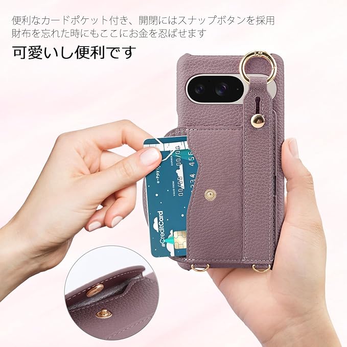 【対応機種】Google Pixel 9 / Google Pixel 9 Pro 対応 携帯 財布型 ケース。紛失防止に役に立ちますおしゃれな肩掛け、首掛けストラップ付いてスマホケース。必ずお持ちの機種をご確認の上ご購入下さい。