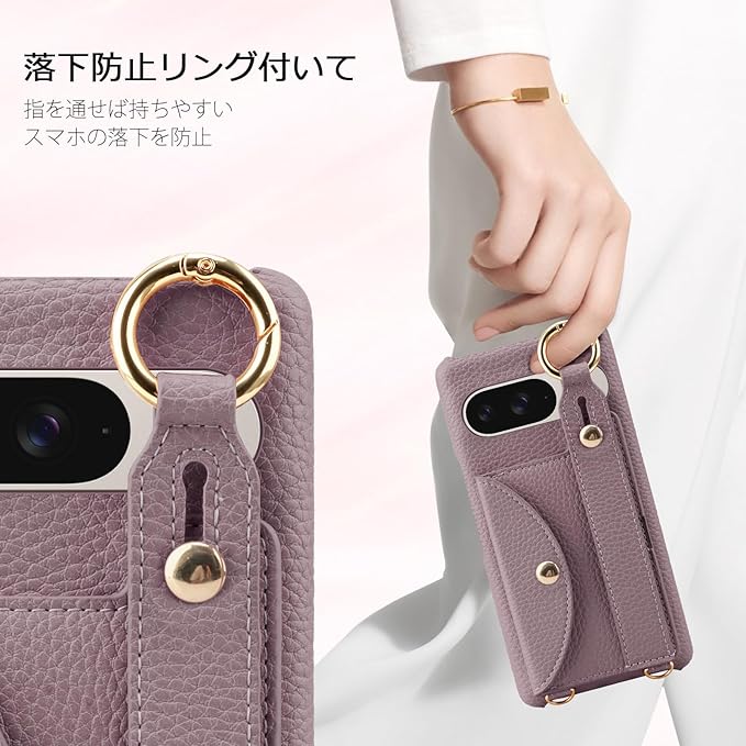 Google Pixel 9 / 9 Pro スマホ ケース グーグル ピクセル9 手帳型カバー 肩掛け 斜めがけ ショルダー ケース Pixel9 財布ケース 保護フィルムプレゼント ピクセル 9 プロ PU皮革カバー 可愛い リング付き 背面 カード収納 ぐーぐるぴくせる9 PRO 女性 携帯 カバー 片手操作 スタンド ハンドヘルド 落下防止 赤紫
