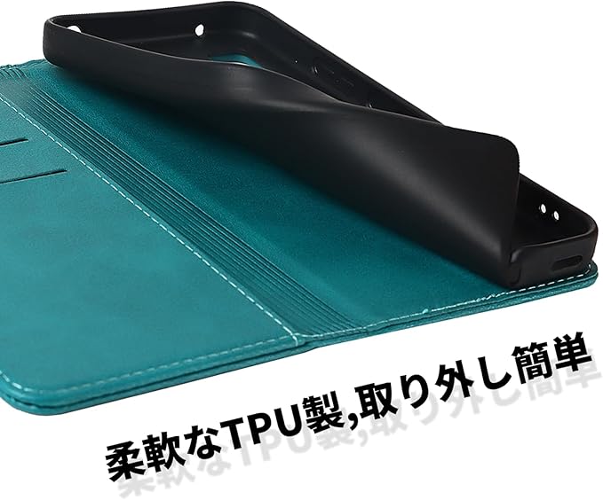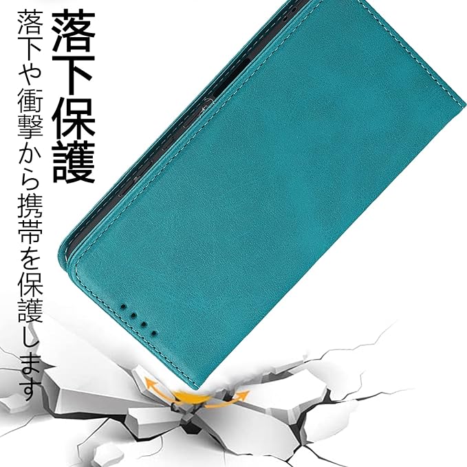 【ポイント②】:マグネット内蔵式のケースです、留め具なしでシンプルなデザイン感をよりアップさせます。表面は手触りの合成レザーです、内部の柔軟なTPUホルダーは衝撃吸収の性能が抜群で、万が一の落下した時、大切なスマホ本体をしっかり守ることができます。