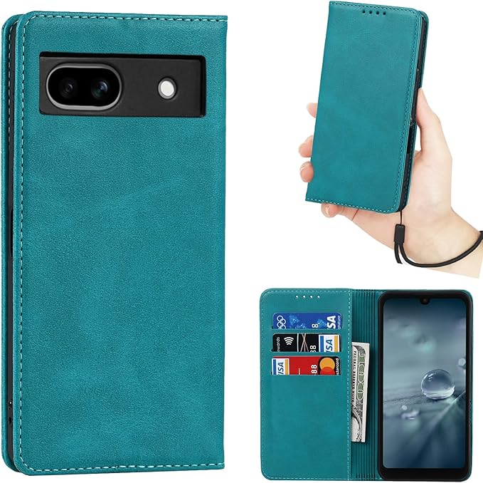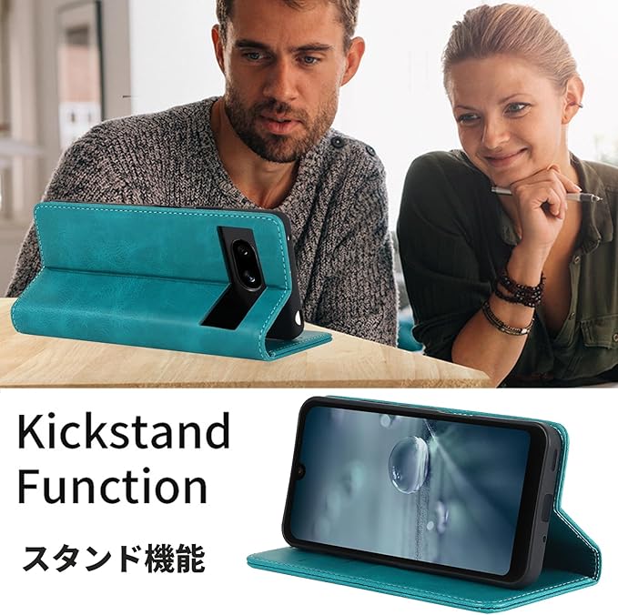 Google Pixel 8A ケース 手帳型 【ストラップ 一本付】 適用 グーグル Google Pixel8A GooglePixel 8A 手帳型 Google ピクセル8A ピクセル 8A スマホケース Googleピクセル 8A ケース case 【Heofuixt】 滑り止め 合成レザー スタンド 手首掛け ハンドストラップ カード入れ マグネット フリップ 落ち着いた色 ターコイズ