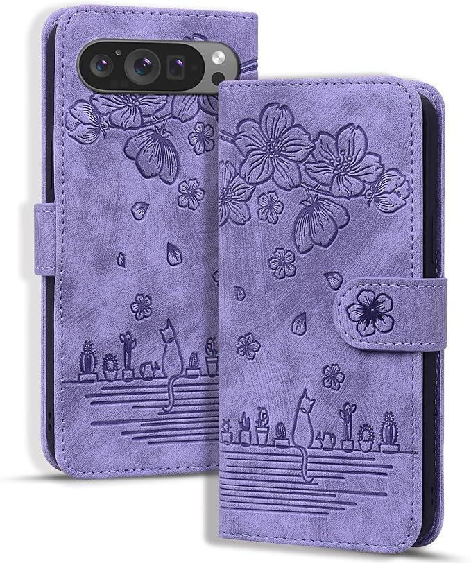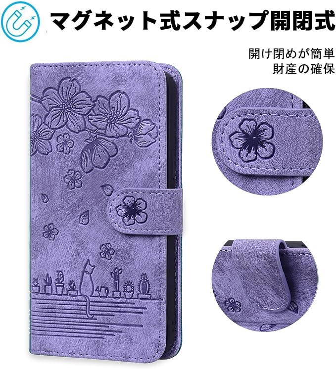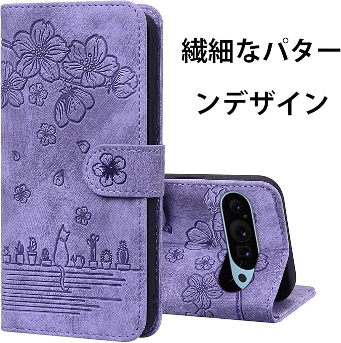 Google Pixel 9 Pro XL ケース 手帳型 ピクセル9pro xl ケース グーグルピクセル 9 pro xl スマホ ケース 手帳型 pixel9proxlケース 人気 PUレザー カード収納 かわいい猫 軽量 便利 手触りが良い 耐衝撃 角度調整可能なスタンド マグネット式 pixel 9 pro xl カバー 手帳型[パープル]