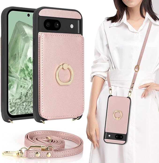 Google Pixel 8a ケース ショルダー リング付き ストラップケース ショルダーケース ポシェット pixel8A ケース docomo ドコモ au SIMフリー softbank 全対応 ピクセル 8A カバー グーグル ピクセル8A カバー pixel8A スマホケース case 適用 iCoverCase カードケース スタンド 斜め掛け 携帯カバー ピンク