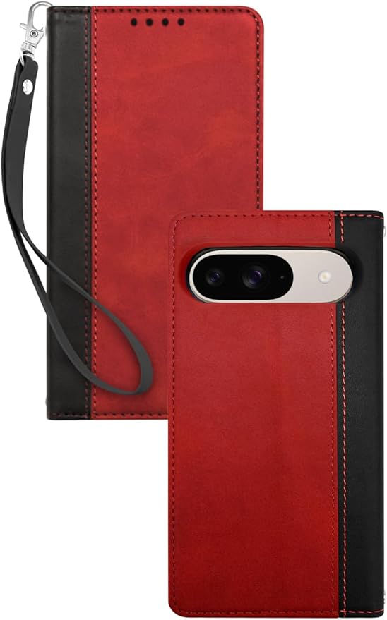 叶kanae カナエ Google Pixel9 / Pixel9 Pro ケース カバー 手帳型 本革調 レザーケース ボルドーレッド ブラック 1個入り