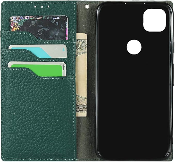 Eastwave for Google Pixel 4A ケース for pixel4a google 4a 手帳型 ケース 財布型 カバー 手帳式 本革 柔らかい 本皮 高質 スプラットホール付き スプラット同梱 内蔵マグネットカード収納 横置きスタンド機能 - ダークグリーン