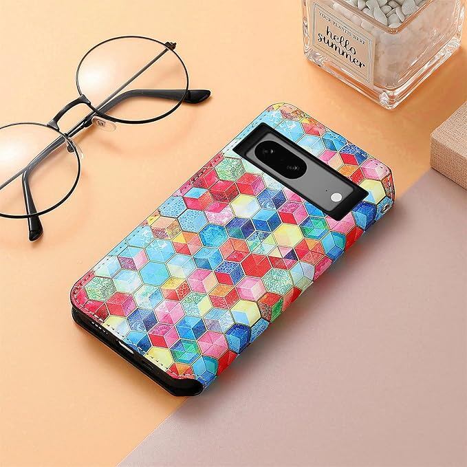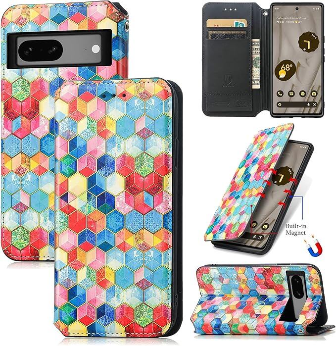 Google Pixel 7A ケース 手帳型 綺麗 かわいい グーグル ピクセル7A ケース ストラップ付き 2枚カード収納 神秘的 カラフル Pixel7A ケース マグネット式 折り畳み式 耐衝撃 レンズ保護 グーグル ピクセル 7A 携帯手帳カバー ストラップ付 (Google pixel 7A, 多彩)