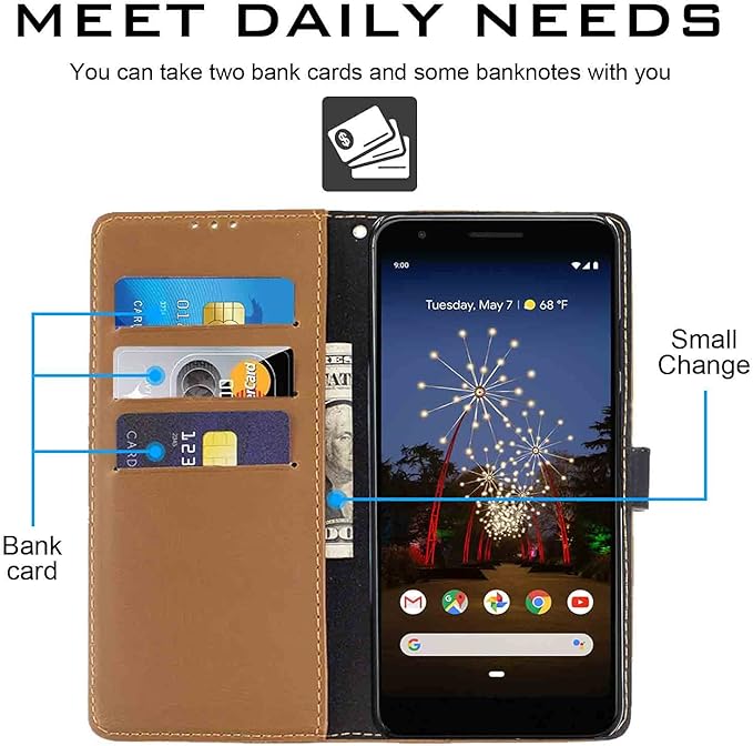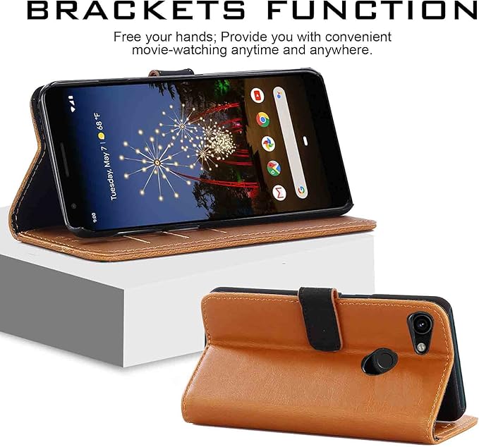 【Anrek】Google Pixel 3a docomo/SoftBank 兼用 ケース 手帳型 カバー (ブラウン) ドコモ ソフトバンク ピクセル3a pixel3a 手帳型ケース カード収納 サイドマグネット スタンド機能付き 全面保護 財布型 PUレザー シンプル ビジネス風Pixel 3a KHAKI