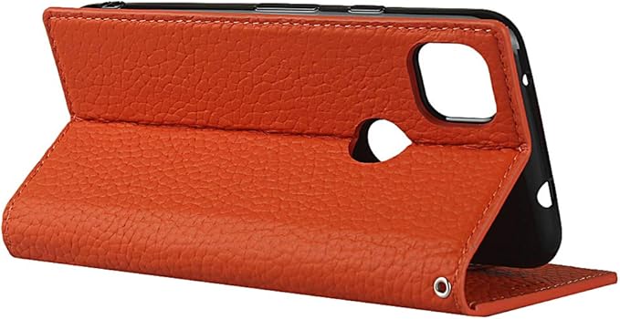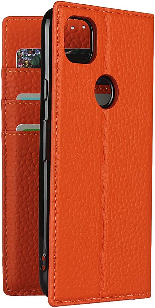 Eastwave for Google Pixel 4A ケース for pixel4a google 4a 手帳型 ケース 財布型 カバー 手帳式 本革 柔らかい 本皮 高質 スプラットホール付き スプラット同梱 内蔵マグネットカード収納 横置きスタンド機能 - オレンジ