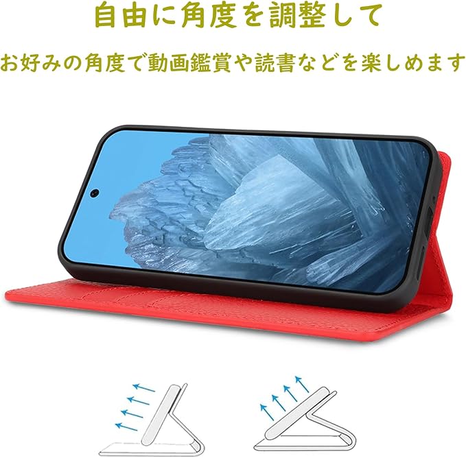 【収納】Google Pixel 9 / 9 Proケース内側に実用性のカード入れポケット 3、内側ポケット 1、カード類、現金、名刺、免許証入れなどを収納でき、通勤も通学にも楽々タイプです。カードスロットに2枚のカードを入れると、内蔵マグネットの機能を最大限に発揮し、カードが消磁されるのを防ぐことができます。横置きスタンド機能が付きまして、好きな角度を調節です。映画を見たり読んだりすることで手を解放できます。