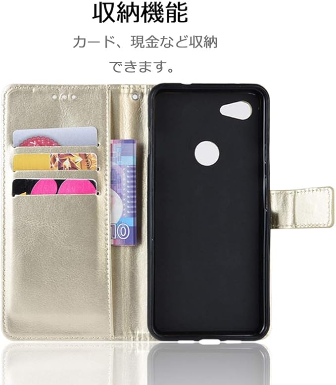 Miimall Google Pixel 3a 手帳型ケース グーグル ピクセル3aカバー 財布型 PUレザー ぴったり対応 擦り傷防止 軽量 カード収納 スタンド機能 グーグル Pixel 3a ケース (ゴールド)