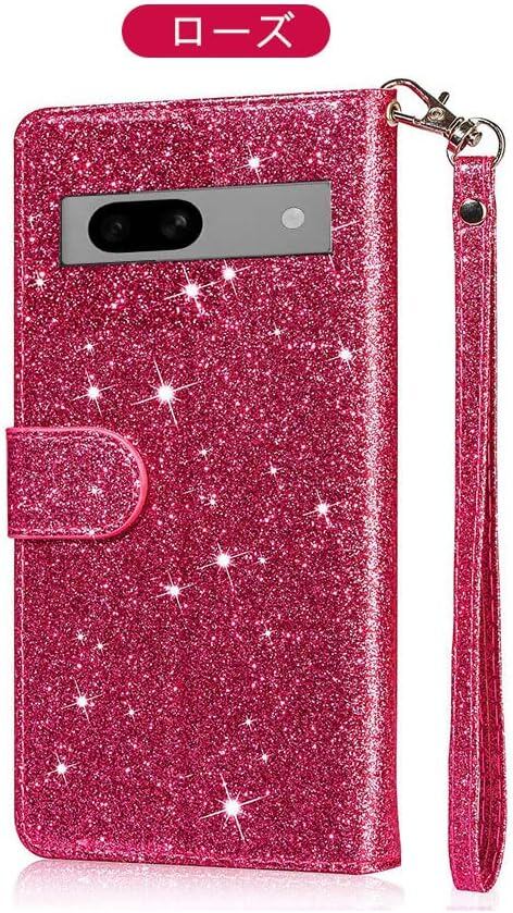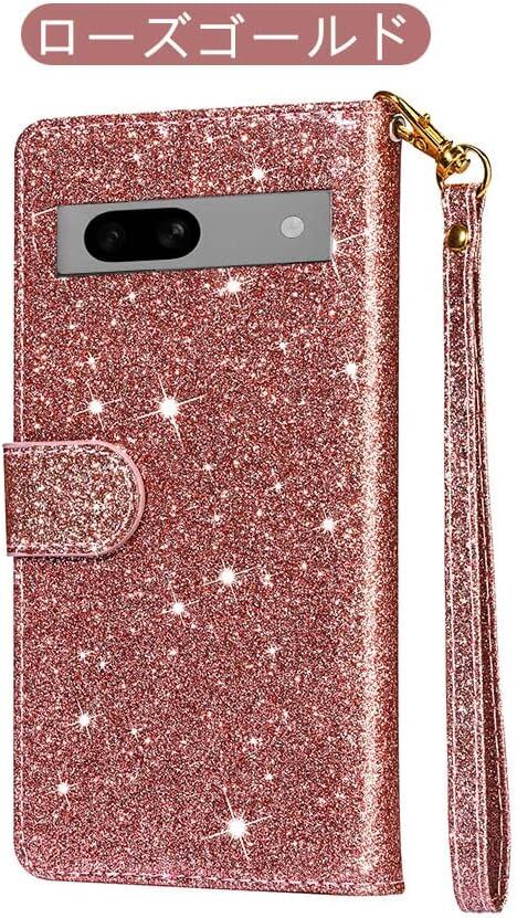 GooglePixel7aカバー手帳型PUレザースタンド機能カード収納ストラップ付きグリッター可愛いキラキラお洒落デコPUレザーケースグーグルピクセル7aアンドロイド