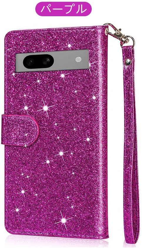Google Pixel 7a カバー 手帳型 PUレザー スタンド機能 カード収納 ストラップ付き グリッター 可愛い キラキラ お洒落 デコ PUレザーケース グーグル ピクセル7a アンドロイド ファスナー付きポケット スマートフォン/スマホケース/カバー