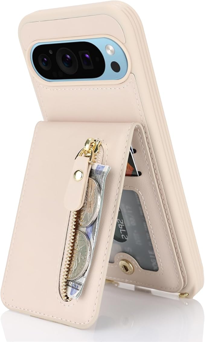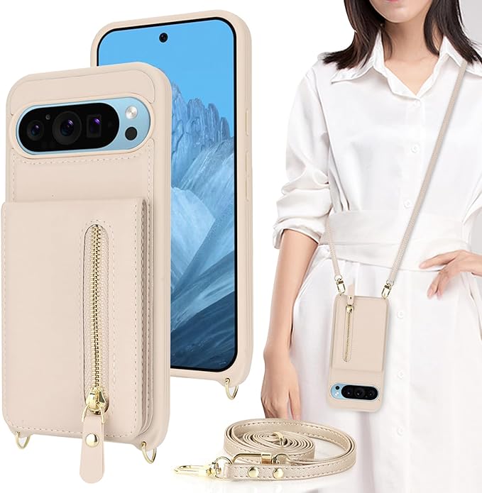 Google Pixel 9 Pro XL ケース ショルダー ストラップ付き ショルダーケース 背面フリップ 上下開 手帳型 Google用 pixel9proXL docomo au SIMフリー softbank 全対応 グーグル ピクセル9プロXL カバー case 適用 iCoverCase カード収納 縦置き スタンド 肩がけ 首掛け 斜め掛け 携帯カバー ベージュ