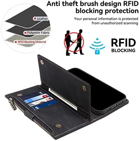 Pixel 8Aケース 手帳型 グーグル ピクセル8a ケース 手帳型 つや消し肌感レザー Pixel 8A携帯カバー マグネット開閉 Pixel 8A カバー 多機能 収納 財布カバー ピクセル 8a ケース カード入れ サイドジッパー 横置きスタンド機能 ケース 縄掛け/肩掛け 保護カバー 全面保護防塵耐衝撃横開き 滑り防止 (ブラック)
