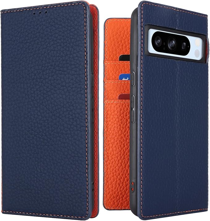 Pelanty for Google Pixel 8 Pro ケース手帳型 pixel8 proスマホケース 牛革製品 本革レザー 財布型カバー カード収納 スタンド機能 内蔵マグネット 手作り柔らかい グーグル ピクセル8Pro 6.7'' 携帯カバー ストラップ付 ヘッドフォンケーブル 耐衝撃--ネイビー