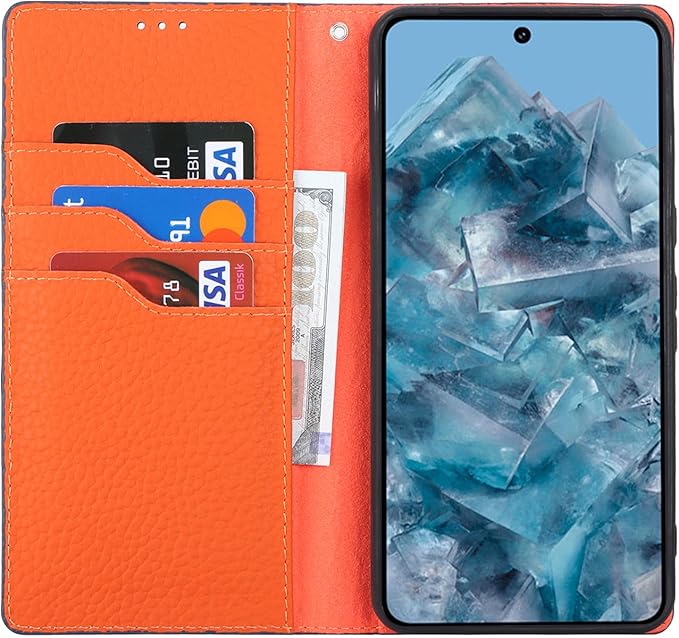 【素材】: シンプルさと高級感を兼ね備えたデザイン, 外殻は牛革製品 本革レザーを採用しており, 内側はスマートフォンにフィットし、隙間なくそれを保護するソフトTPUシリコーン材料で作られています。