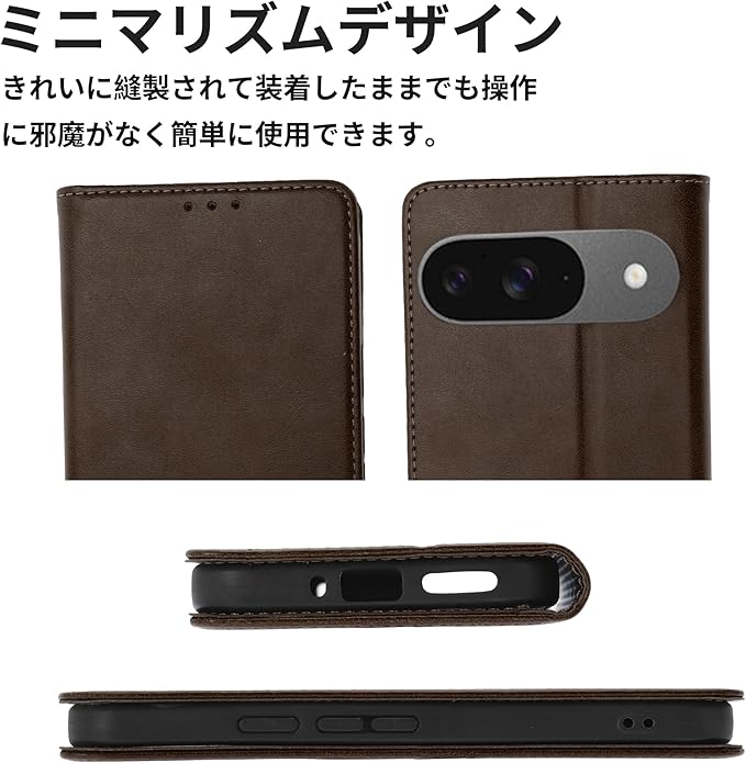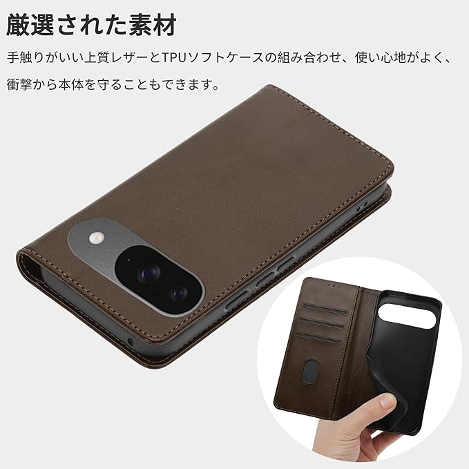 手帳型スマホケース Google Pixel 9/9Pro用 ケース グーグルピクセル用 カード収納ポケット付き スタンド機能付き PUレザー スマホケース 耐衝撃 全面保護 マグネット式 ストラップホール付き 15.7x7.9cm ブラウン