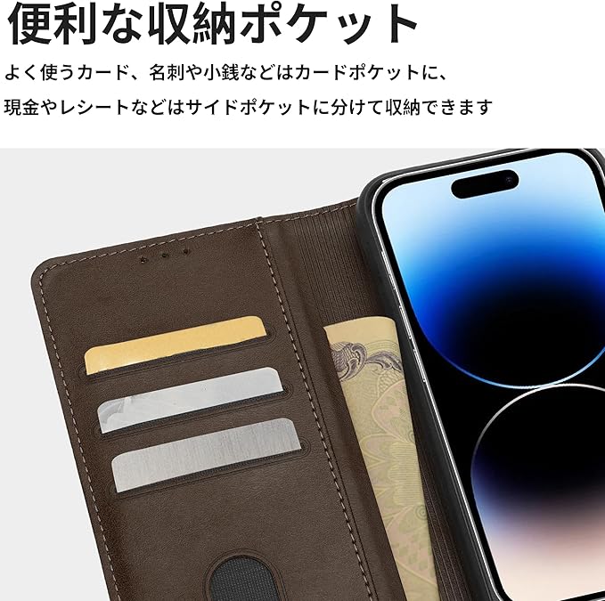 スリムデザイン: スリムで軽量な構造でエレガンスを漂わせる手帳型スマホケースで、スマホの美学を損なうことなく、日常の摩耗から必要な保護を提供します。