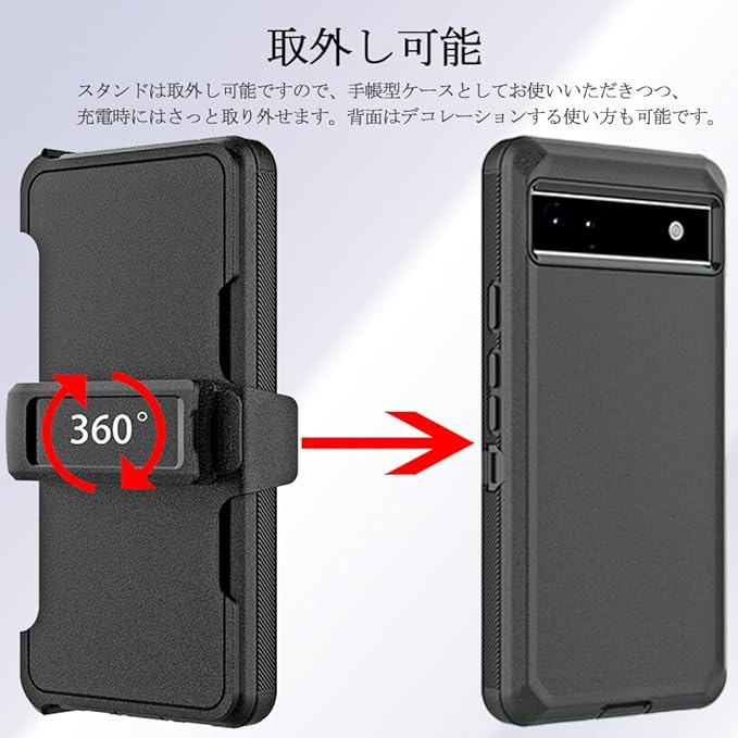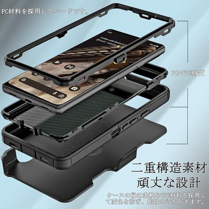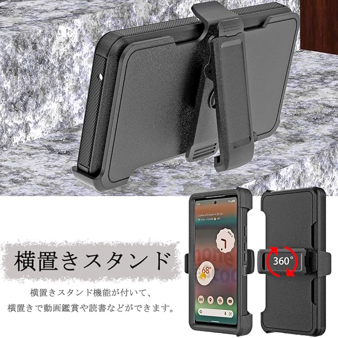 【スタンド付き|取外し可能】Miimall対応Google Pixel 7A ケース 横置きスタンド グーグル ピクセル 7A カバー 擦り傷防止 防衝撃 装着簡単 薄型 PC+TPU材質 軽量 ぴったり対応 Google Pixel 7A ケース(ブラック)