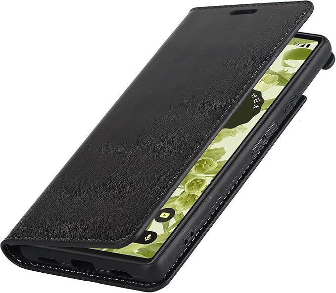 Eastwave for Google Pixel 6A ケース for google pixel6a 手帳型 財布型 カバー 収納ポケット 牛革製品 ポケット収納付き 横置きスタンド機能 落ち着くデザイン オシャレ 4色 ブラック