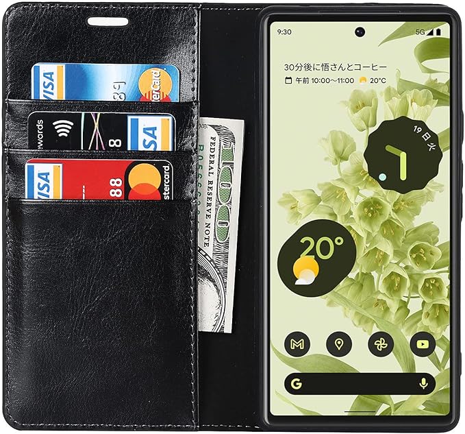 for Google Pixel 6A ケース for google pixel6a 手帳型 財布型 カバー 収納ポケット 牛革製品 ポケット収納付き 横置きスタンド機能 落ち着くデザイン オシャレ 4色 ブラック