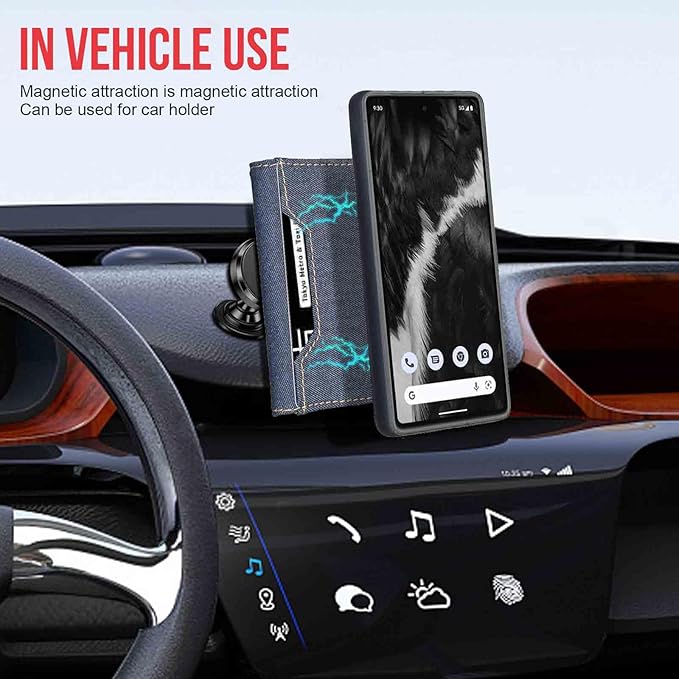 【Anrek】Google Pixel 8 Pro docomo 用 デニムケース カード収納 縄掛 手帳型 ケース (ダークブルー) グーグル ピクセル8プロ 背面カバー 両用 磁石吸着 名刺入れ 分離式 取り外し自由 車載 耐衝撃 財布合一 ケース グーグルpixel8pro BLUE