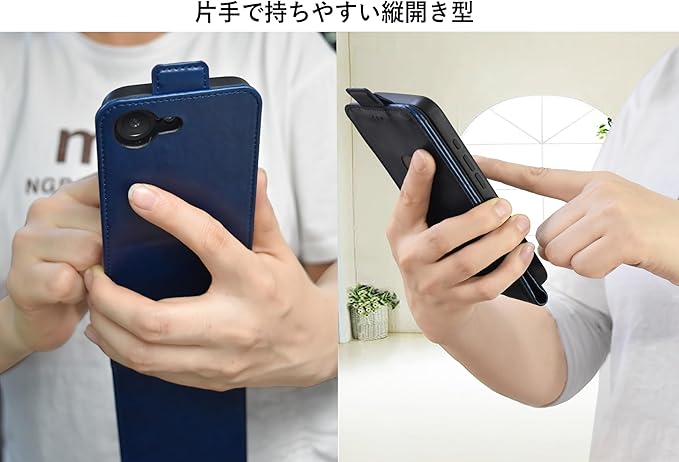 【珍しい縦開きタイプ】片手で持つなら手帳型より持ち易い。サイドマグネットフラップが端末の側面にこないため、持ちやすい、しっかりと手に馴染みタッチ操作も快適に。スリムな手帳ケース、薄型の為かさばりにくく、サッと取り出せる設計