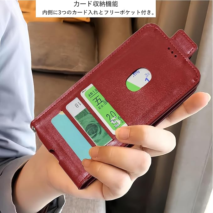 【便利な機能】読書や映画鑑賞に便利なスタンド機能搭載、カードポケットも備えた多機能ケース、本体素材で作製したハンドストラップ付で、不意の落下防止に。