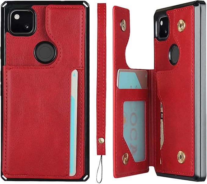 Google Pixel 4A 縄掛け ケース Pixel 4A 背面 PUケース Pixel 4A カード収納 Pixel 4A 手帳型 カバー Pixel 4A 背面カード 収納 Pixel 4A 背面 手帳型 PUカバー 磁気ボタン Cavor Pixel 4A 携帯 カバー Pixel 4A 財布型 カバー 付きの専属ストラップ同梱なので タンド機能 内蔵マグネット 名刺入れ 小銭入れ suicaカード ICカードホルダー 軽量 耐久性 便利 多機能 落下保護 Qi急速充電対応 【レッド】