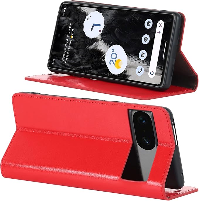 Eastwave for Google Pixel 7A ケース for Google Pixel7A GooglePixel7A 手帳型 財布型 カバー 収納ポケット 牛革製品 ポケット収納付き 横置きスタンド機能 落ち着くデザイン オシャレ 4色 レッド