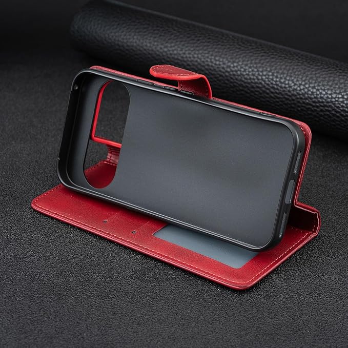 case for Google pixel 9/ 9 Pro 通用カバー グーグル ピクセル9/ 9 Pro ケース手帳型ケース 猫の跡 型押し柄【KODO】 スタンド機能付き マグネット開閉 財布型 カード収納 財布型 全面保護 (A1-レッド, に適用するGoogle pixel 9/ 9 Pro通用)