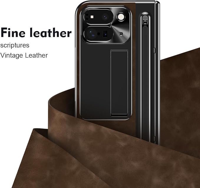 ケース GG Pxl 9 Pro Fold用 手帳型 つや消し皮革 隠しブラケット機能 ヒンジ保護 ペンみぞ メタルレンズカバー 薄型 軽量 古典なレザー 折り畳み 人気、キラキラ おしゃれ かわいい 二層構造 取り外し ポケット 耐衝撃 QI充電 ワイヤレス 財布型 面白い - コーヒー色