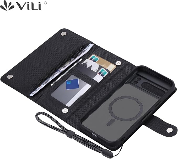 ViLi-GHB Google Pixel 8a 対応 2in1 財布 カード収納 取外し可能 マグネット 着脱式 分離式 ストラップ付き 2WAY 手帳型ケース グレンチェック調 黒 CPIX8a-VL-GHB-BK