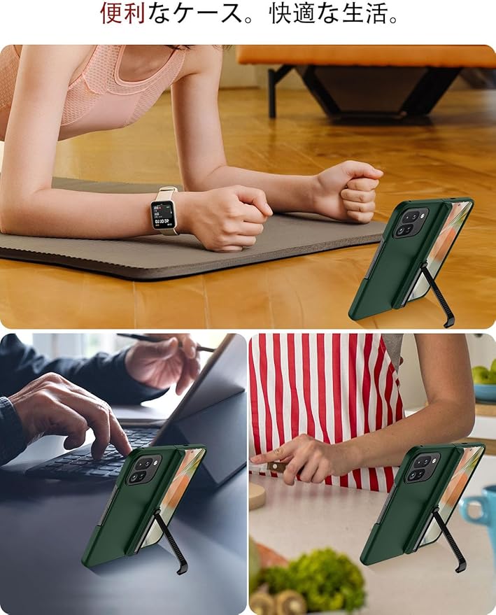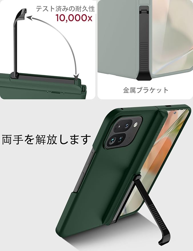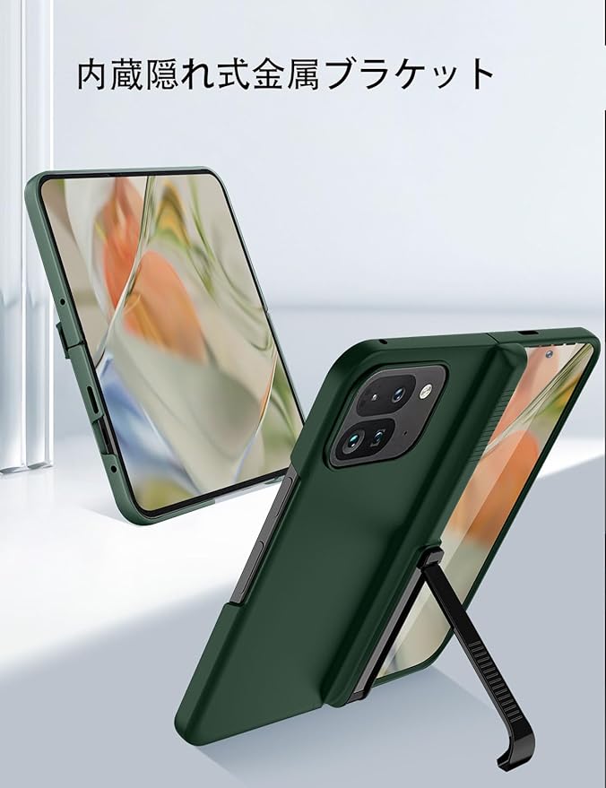 【隠し金属製スタンド|マットな質感】対応Pixel 9 Fold スタンド, 隠しブラケットが付属しており、そっと開くことで携帯電話ホルダーに変えることができ、不要なときは隠すことができます。横方向と縦方向のスタンド,あなたは好きな角度を自由に選ぶことができます。ハードPCを使用して作られており、良好な耐圧性と耐摩耗性を持っています。マットな質感,表面が滑らかであるか,肌にやさしい感触,汚れ防止, 指紋防止,耐汚れ,擦り傷防止, 清掃が容易で、携帯電話ケースを常に清潔で美しく保つことができます。