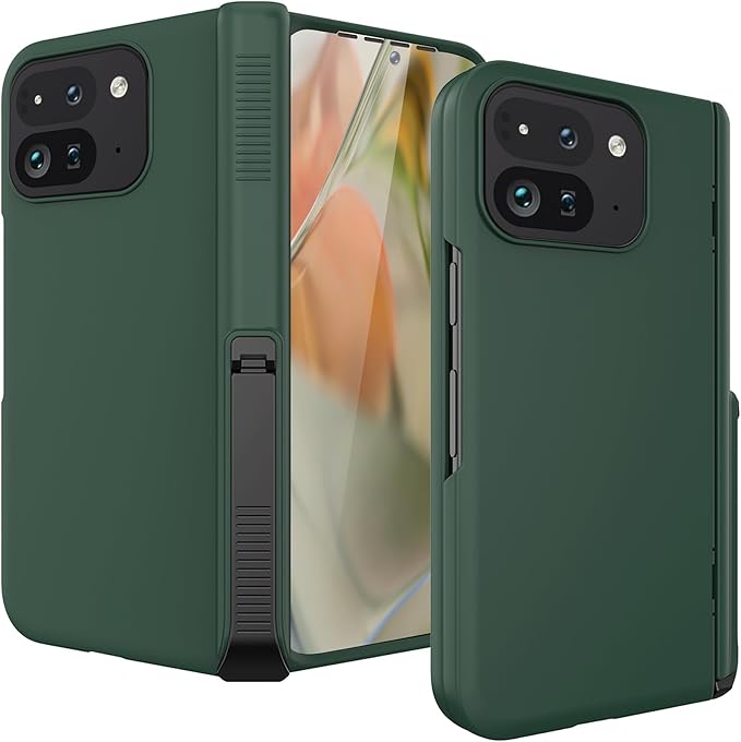 Miimall 対応Pixel 9 Pro Fold スマホカバー 耐衝撃 ヒンジ スタンド ガラスフィルム 薄型 保護ケース 全身保護 Pixel Fold 2 case Pixel 9 Fold バンパー マット 肌触りも良い レンズ保護 シンプル ピクセル9 プロ フォールド 携帯ケース (グリーン)