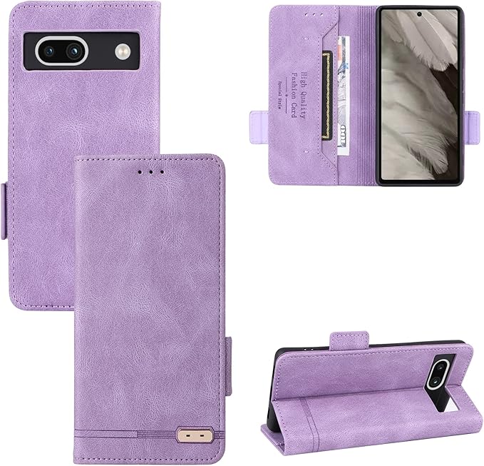 Google Pixel 7A ケース 手帳型 グーグル ピクセル 7A 財布型 カバー Pixel7A ケース 【液晶保護フィルム&ストラップ 同梱】 スマホケース ピクセル7a 6.1インチ 手帳ケース 滑り止め 合成レザー スタンド機能 カードポケット収納 耐衝撃 SoftBank PIXEL 7A 携帯ケース つや消し 磁石内蔵 マグネット 留め具 (パープル)