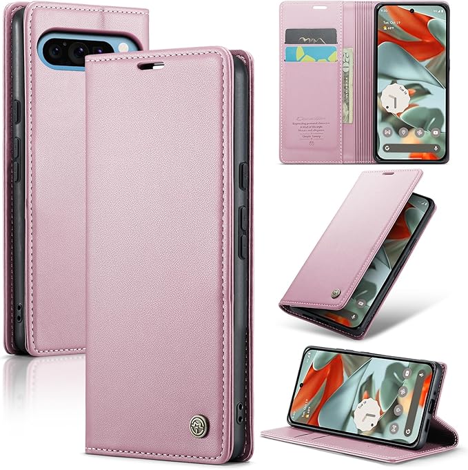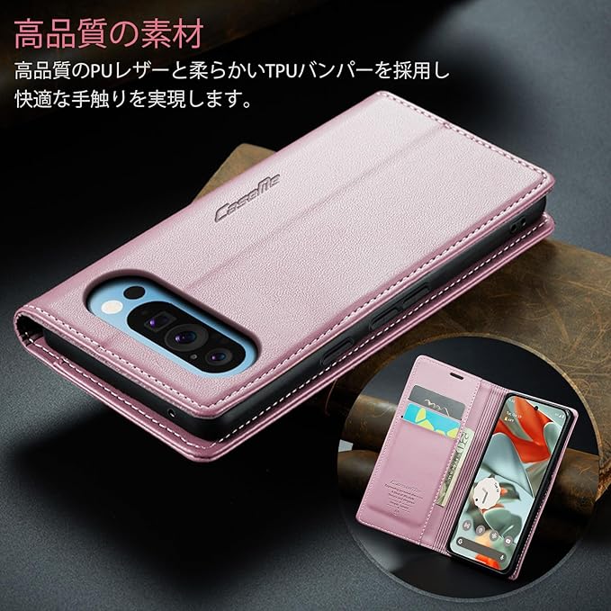 [CeiBand] Google Pixel 9 対応 ケース 手帳型 Pixel 9 Pro 手帳型ケース 防塵 耐衝撃 傷つけ防止 軽量 手作り PUレザー カード収納 RFID磁気防止 財布型 カード入れ マグネット内蔵 スタンド機能 全面保護 耐摩擦 ビジネス風 Google Pixel 9/9 Pro 用 (ピンク)