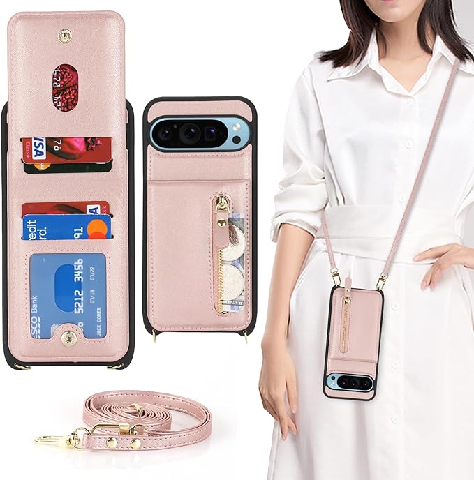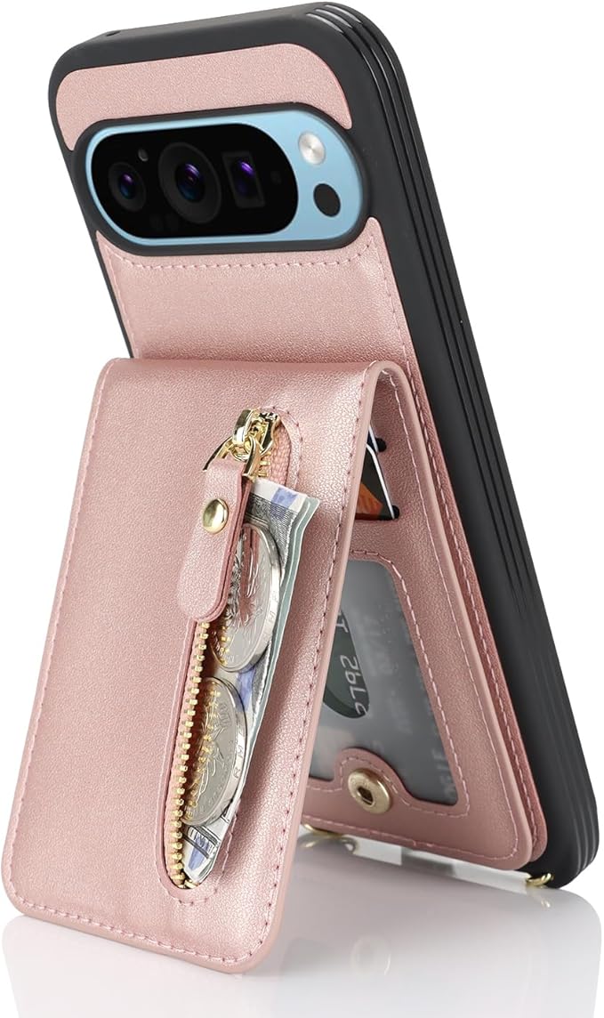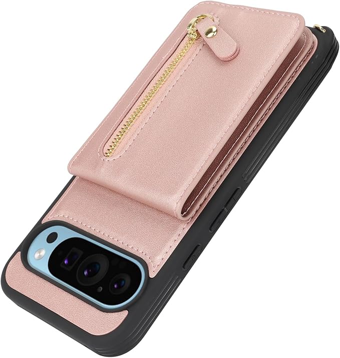 Google Pixel 9 Pro XL ケース ショルダー ストラップ付き ショルダーケース 背面フリップ 上下開 手帳型 Google用 pixel9proXL docomo au SIMフリー softbank 全対応 グーグル ピクセル9プロXL カバー case 適用 iCoverCase カード収納 縦置き スタンド 肩がけ 首掛け 斜め掛け 携帯カバー ピンク