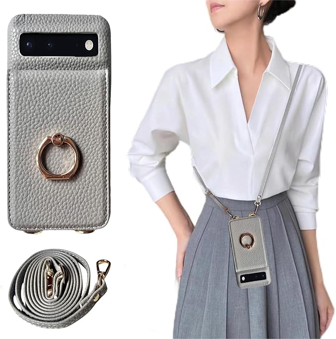 google pixel8 pro ケース ショルダー pixel8 pro ケース ショルダー 薄型 かわいい スマホケース グーグルピクセル8プロ ケース ショルダー ストラップ 可愛い スマホケース 携帯ケース 背面手帳型 斜めかけ 肩掛け 首掛け 紐付き 韓国 軽量 カード収納 ショルダーケース おしゃれ 2way (グレー)
