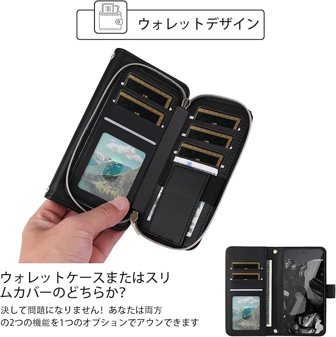 Elisorli for Google Pixel 9 Pro XL 手首/ショルダーストラップ カードスロット ジッパー財布 豪華 PUレザー スタンド ための 携帯電話のカバー 持つ Pixel9 9Pro 9ProXL Nine ウォレットケース しい 大人人気 お洒落 ケース 手帳型 スマホケース カバー スマートフォン 耐久性 耐衝撃 フラップ ストラップホール カード収納 女 ブラック