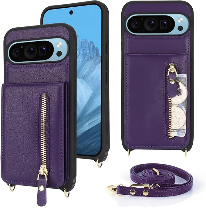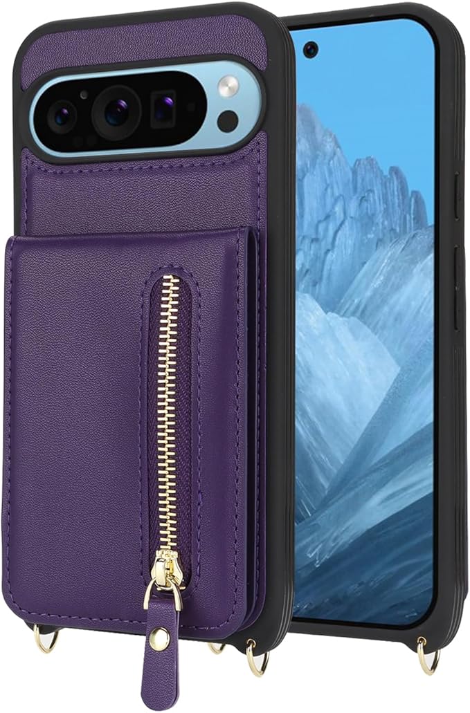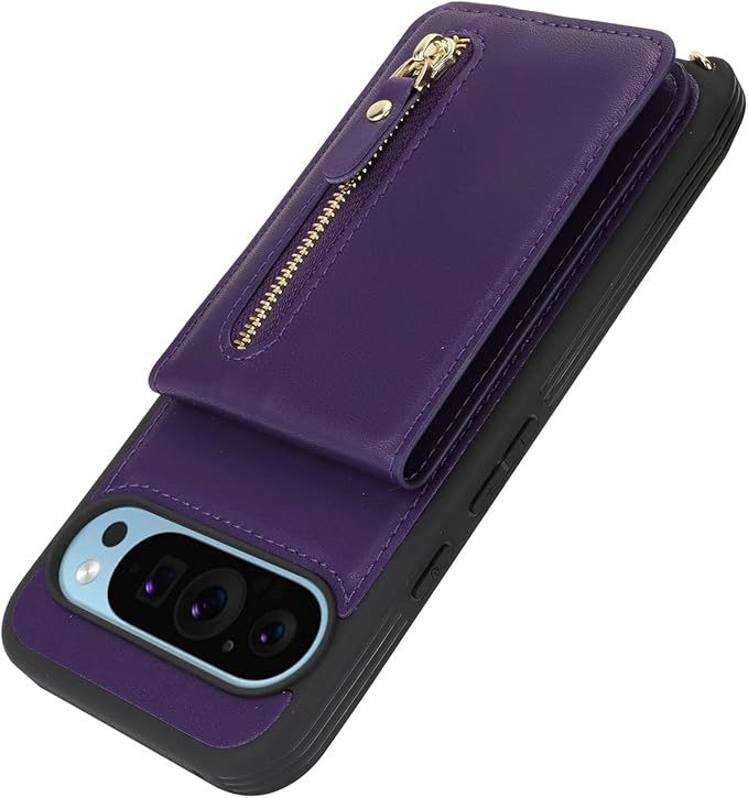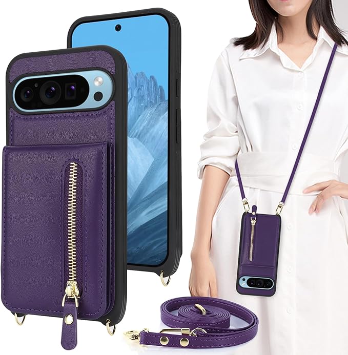 Google Pixel 9 Pro XL ケース ショルダー ストラップ付き ショルダーケース 背面フリップ 上下開 手帳型 Google用 pixel9proXL docomo au SIMフリー softbank 全対応 グーグル ピクセル9プロXL カバー case 適用 iCoverCase カード収納 縦置き スタンド 肩がけ 首掛け 斜め掛け 携帯カバー パープル