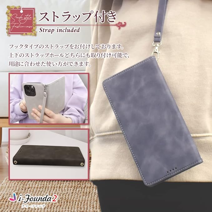 【iFounda2ケースの特徴】 深みのある色合いので、落ち着いた印象を与えます。 フェイクスエードを使用している為、肌ざわりよく手にフィットします。 また、耐久性もあり丈夫な仕上がりとなっております。