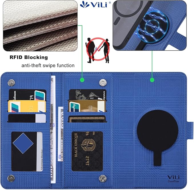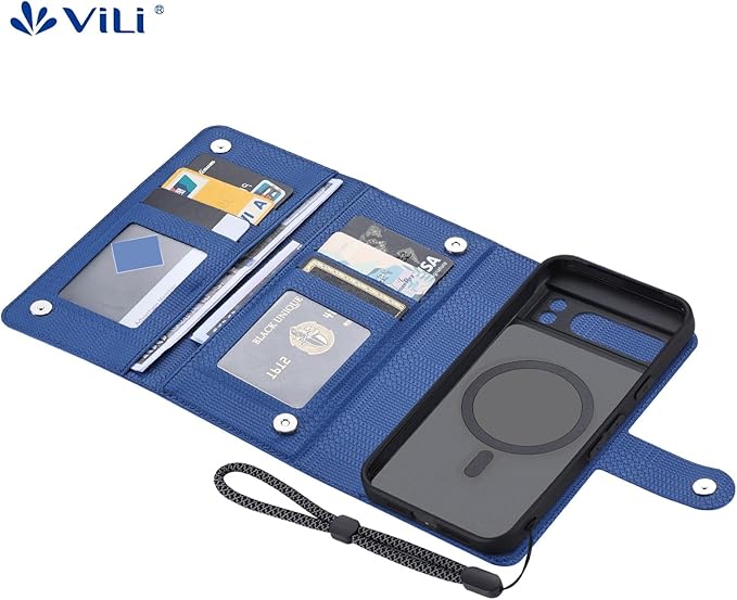 ViLi-GHA Google Pixel 8a 対応 2in1 紙幣 カード収納 取外し可能 マグネット 着脱式 分離式 ストラップ付き 2WAY 手帳型ケース グレンチェック調 青 CPIX8a-VL-GHA-BU