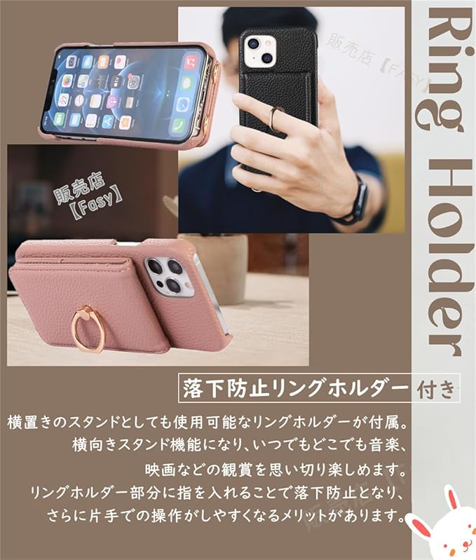 ● 落下防止リングスタンド付きの背面手帳型ショルダーケースです。