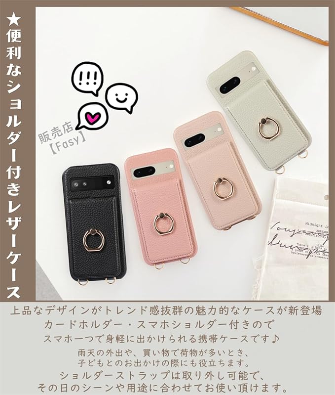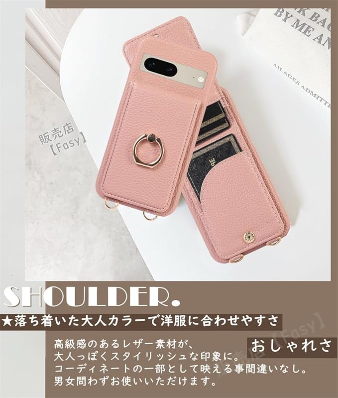 リング付き Google Pixel 8 Pro スマホケース ショルダータイプ 韓国 FASY Google ピクセル8プロ Pixel8Pro ショルダーケース カード入れ 斜めかけ 肩掛け スタンド ショルダーストラップ グーグル ピクセル8Pro 携帯ケース スマホショルダー カード カード落ちない 新型 大人 おしゃれ かわいい 耐衝撃 大人女子 レディース くすみカラー サーモンピンク